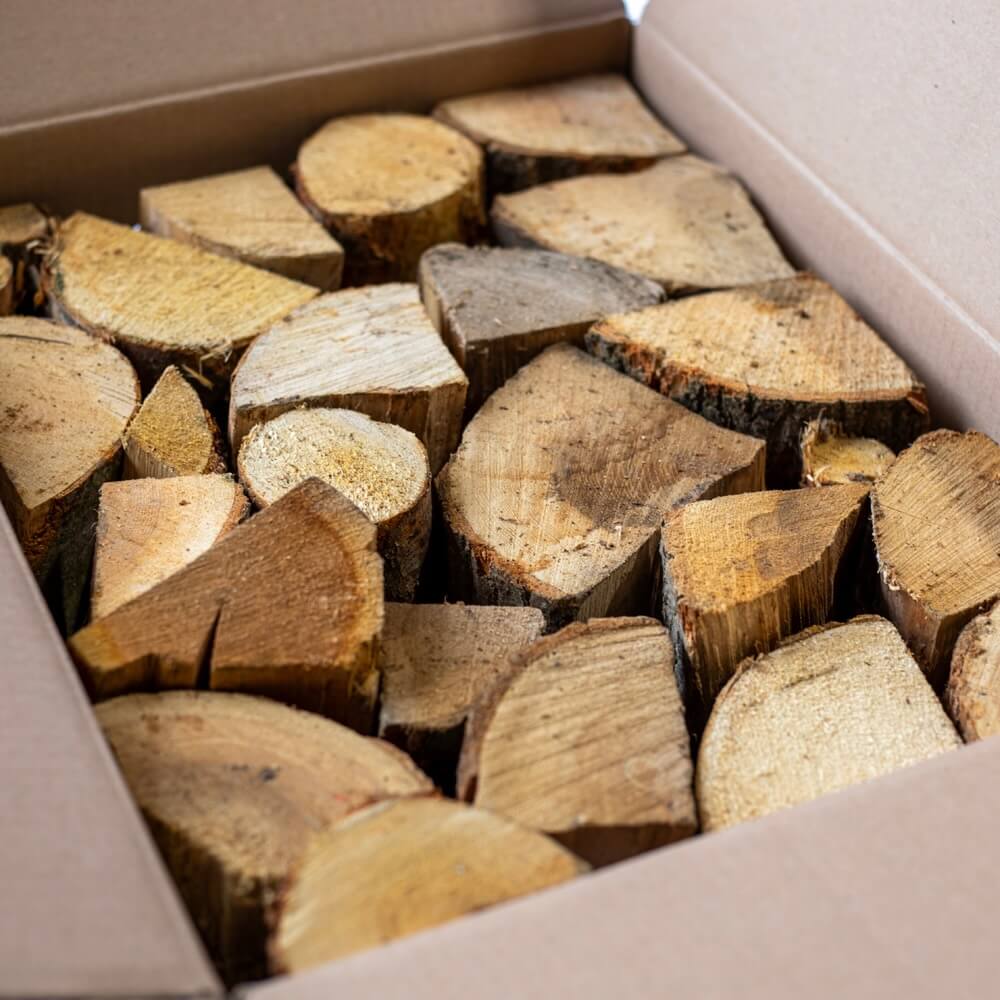 All species are UK-sourced from responsible forestry, tree surgeons, and local suppliers. Our kiln-drying uses renewable biomass heat just miles from where the logs are felled. Fully recyclable, plastic-free packaging ensures your fires stay clean in every sense.